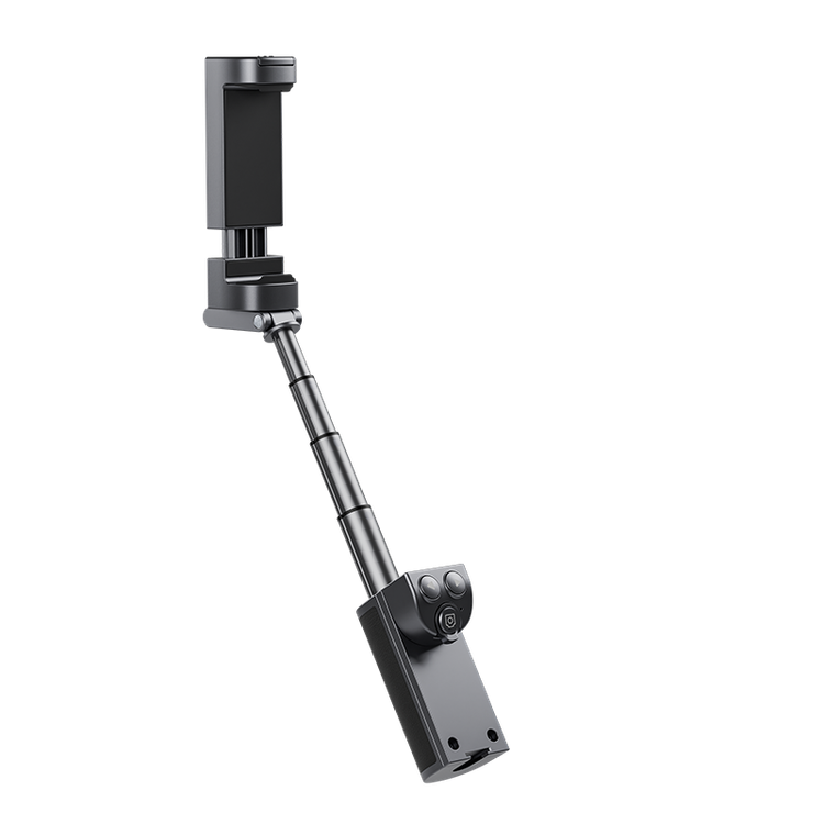 ۲. حالت سلفی استیک تاشو (Hidden Extendable Selfie Stick) میله تلسکوپی مخفی که تا ۳۰۰ میلیمتر (حدود ۱۱.۸ اینچ) باز میشه. چرخش ۳۶۰ درجه و شیب ۱۸۰ درجه برای زوایای نامحدود. ایدهآل برای سلفیهای گروهی، ولاگینگ یا فیلمبرداری از زوایای بالا/پایین.