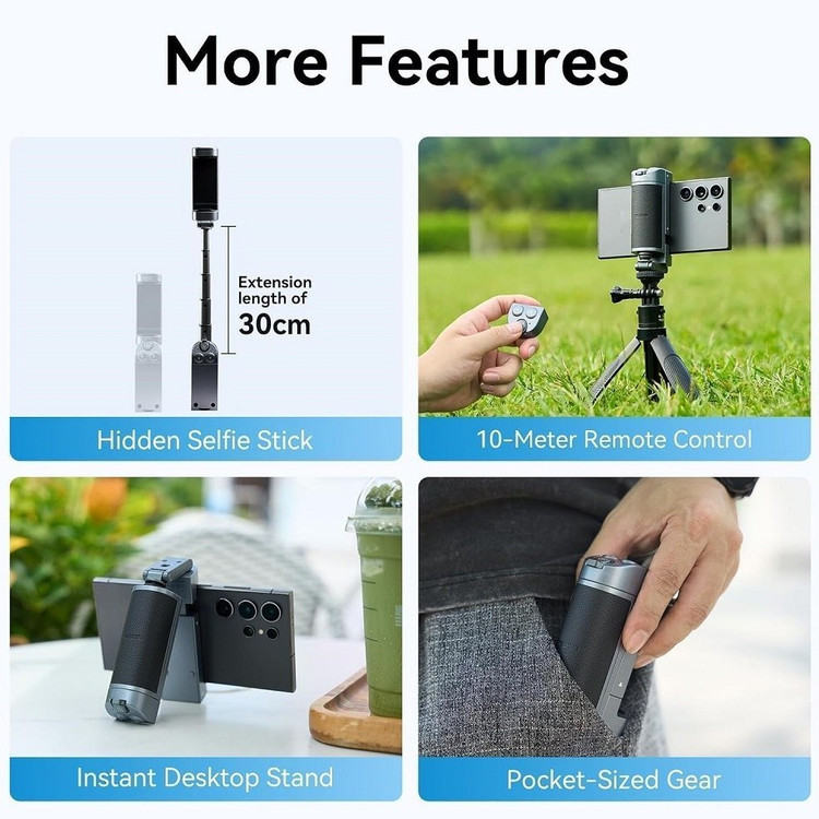 Telesin P1-MP-01 یک گریپ هوشمند و چندمنظورهست که عکاسی موبایل رو به سطح حرفهای میبره. با ویژگیهای نوآورانه مثل سلفی استیک مخفی و کنترل بلوتوثی، ایدهآل برای بلاگرها، عکاسان آماتور و حتی کاربران روزمرهست.