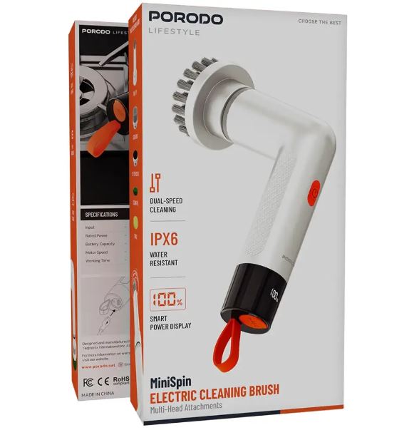 فرچه برقی شارژی پورودو مدل Porodo MiniSpin Electric Cleaning Brush PDS3CBWH، راهحلی نوین و کارآمد برای تمیزکاری آسان و سریع منزل شماست.