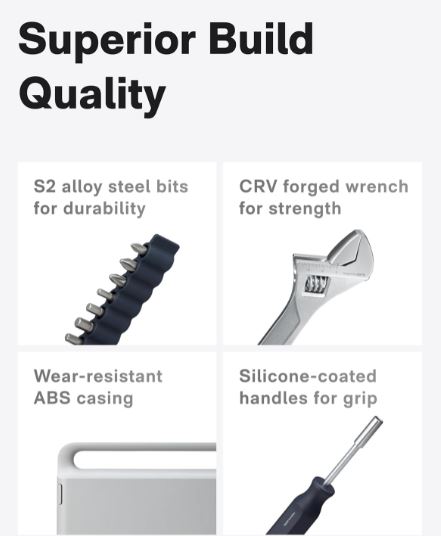 • دارای انواع سری مثل: PH1/PH2، PZ2، T25، سری ششگوش (H3/H4/H5)، چهارسو، دوسو و برخی سریهای خاص بسته به نسخه
