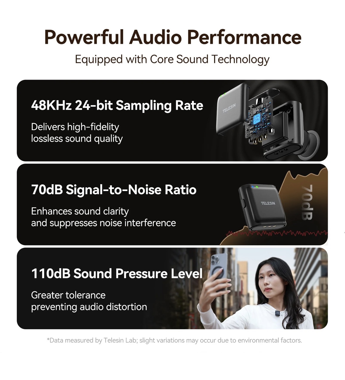 تلسین در این میکروفون، از فناوری پیشرفتهای استفاده کرده است تا کیفیت صدای قابل مقایسه با استودیوهای حرفهای را به ارمغان بیاورد. نرخ نمونهبرداری 48 کیلوهرتز و 24 بیت تضمین میکند که صدای ضبط شده دارای کیفیت Hi-Fi بوده و تمام جزئیات صوتی با وضوح و بدون افت کیفیت ثبت شوند.