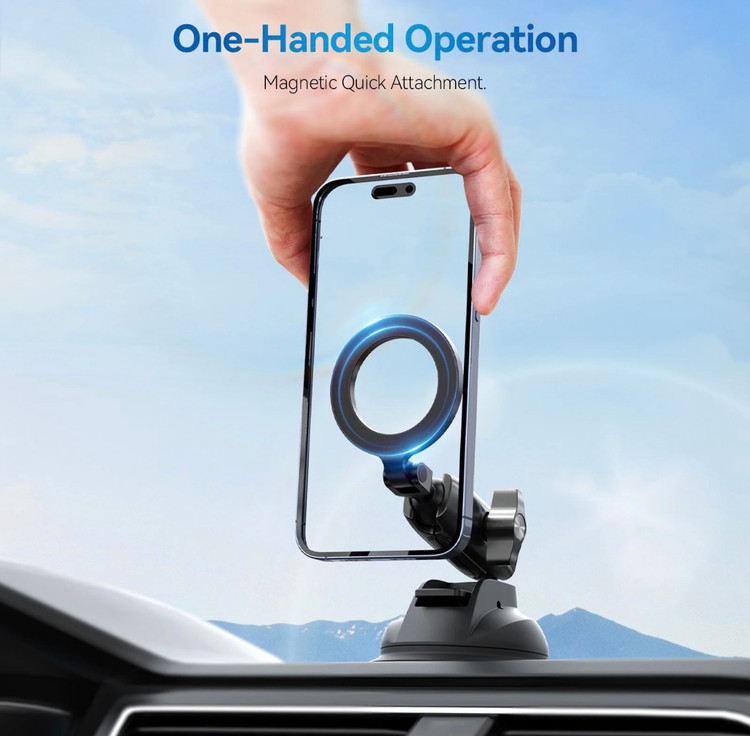 - مغناطیس قوی و نصب سریع: به لطف ویژگی مغناطیسی، اتصال و جدا کردن گوشی به سرعت انجام میشود. نصب خود پایه نیز از طریق پایه مکنده (Suction Cup) به آسانی و در کمترین زمان ممکن است.
