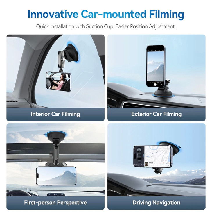 - فیلمبرداری خارج از خودرو: برای ثبت نماهای جذاب و خلاقانه از محیط و جاده (با نصب ایمن بر روی سطح صاف بدنه خودرو).