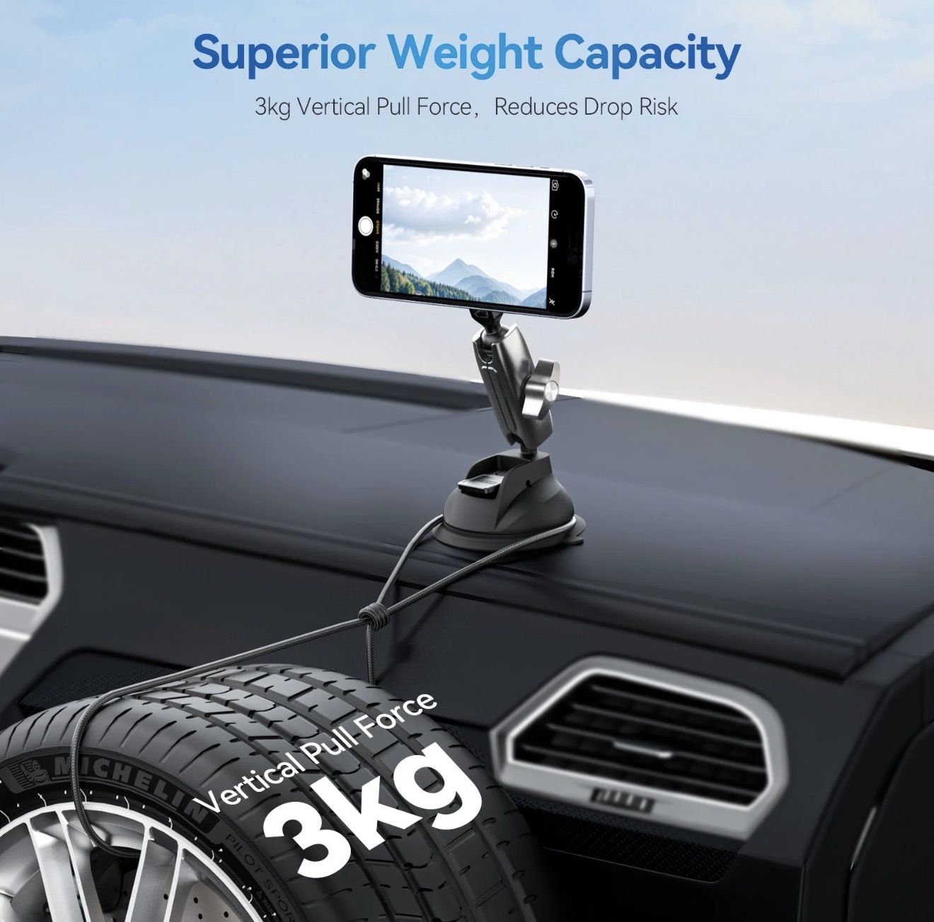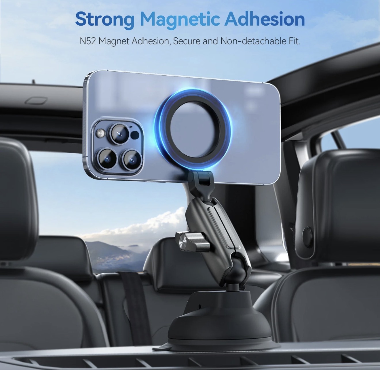 - مغناطیس قوی و نصب سریع: به لطف ویژگی مغناطیسی، اتصال و جدا کردن گوشی به سرعت انجام میشود. نصب خود پایه نیز از طریق پایه مکنده (Suction Cup) به آسانی و در کمترین زمان ممکن است.