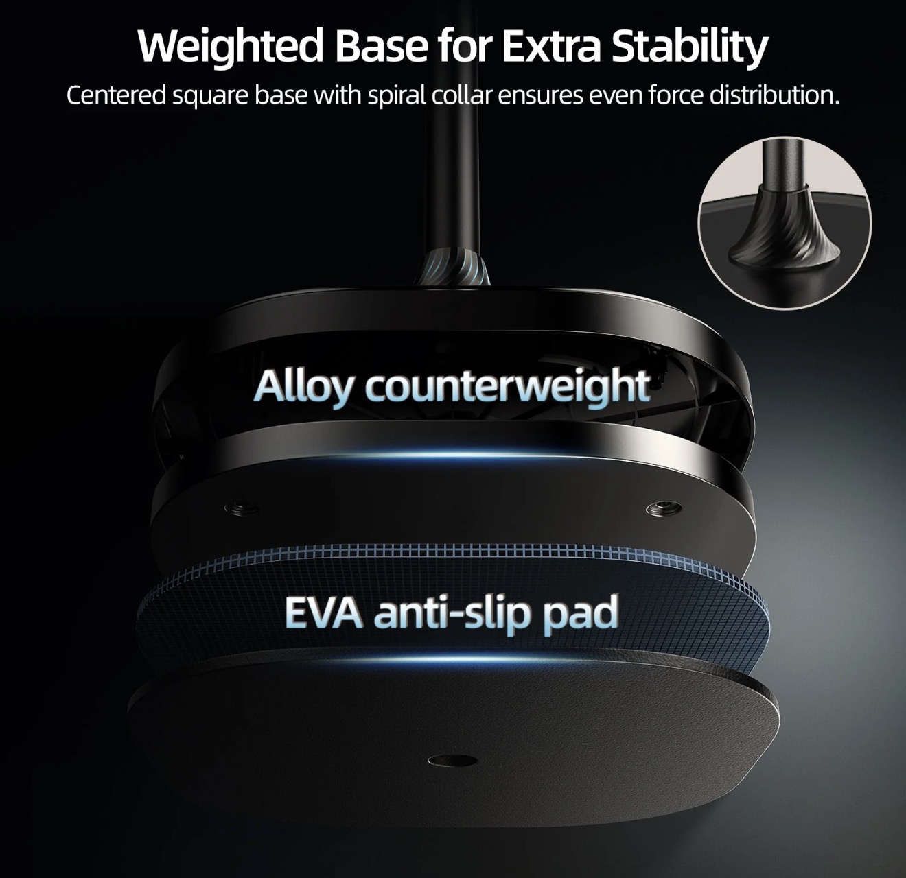 یکی از مهمترین چالشها در پایههای ایستاده، لرزش و عدم پایداری است. P3-FS-01 این مشکل را با طراحی زیر حل کرده است: شاسی مربعی (با ابعاد ۲۶۰x۲۶۰ میلیمتر) وزن محصول حدوداً ۲۳۶۰ گرم را توزیع کرده و پایداری کامل را تضمین میکند تا در حین ضبط، گوشی شما ثابت و بدون لرزش باقی بماند.این پایه قابل جمع شدن است، که جابجایی و ذخیرهسازی آن را آسان و انعطافپذیر میسازد.