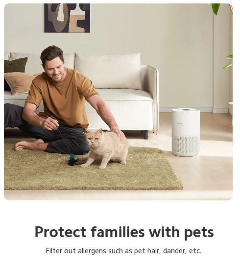 این دستگاه به فیلتر سهمرحلهای مجهز است که شامل فیلتر اولیه برای جذب ذرات درشت، فیلتر با راندمان بالا برای حذف تا ۹۹.۹۷ درصد ذرات بسیار ریز و لایه کربن فعال برای کاهش بوهای نامطبوع میشود. طراحی ورودی هوای ۳۶۰ درجه باعث میشود هوا از تمام جهات وارد دستگاه شده و با سرعت بیشتری تصفیه شود. تعویض فیلتر نیز بهسادگی و از قسمت زیرین دستگاه انجام میشود.