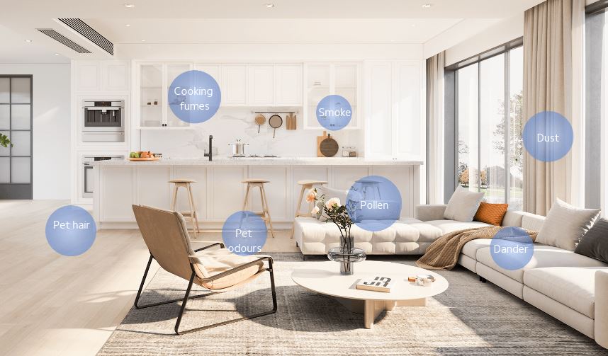 Xiaomi Smart Air Purifier 4 Pro قادر است ذرات گرد و غبار، آلرژنها، دود و موی حیوانات را کاهش دهد و همچنین بوهای محیط، از جمله بوی پختوپز را جذب کند. الگوریتم هوشمند دستگاه سرعت فن را بر اساس میزان آلایندهها تنظیم میکند و محیطی سالم و تازه ایجاد مینماید.