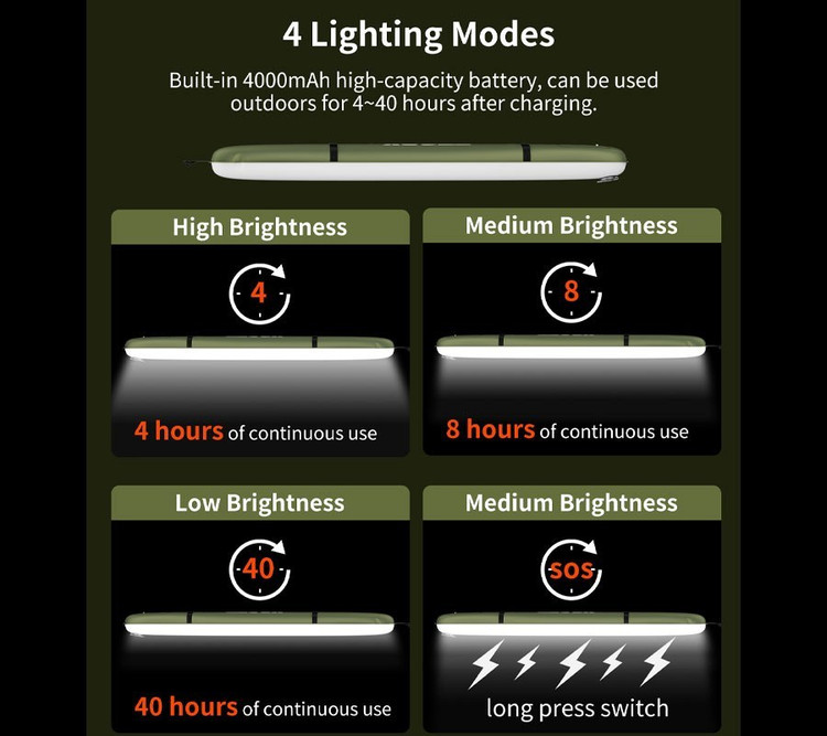 این چراغ لولهای بهطور کامل بادی ( Inflatable) بوده و از جنس TPU با دوام بالا ساخته شده است که با وزن سبک و قابلیت شارژ خورشیدی و پورت USB،ترکیبی از راحتی، مقاومت و نوردهی قوی را ارائه میدهد.