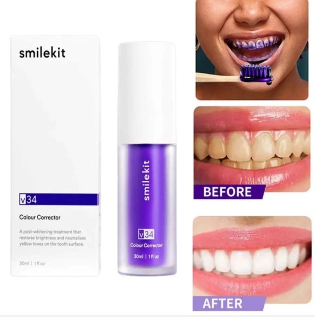 اسمایل کیت اورجینال V34 با فرمول اصلاح رنگ ساخته شده ؛ بر اساس تئوری رنگ → زردی دندونهارو خنثی میکنه و درخشندگی طبیعی رو برمیگردونه.