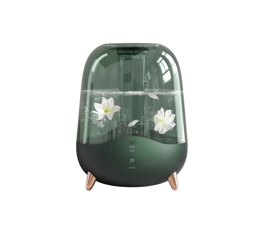 بدنه دستگاه از پلاستیک مقاوم ABS ساخته شده که علاوه بر ایجاد وزن سبک (حدود ۱ کیلوگرم)، مقاومت خوبی در برابر ضربه و استرسهای محیطی دارد. طراحی شفاف مخزن نهتنها به زیبایی دستگاه افزوده، بلکه به کاربر اجازه میدهد سطح آب باقیمانده را به راحتی مشاهده کند. یکی از ویژگیهای خلاقانه این مدل، امکان قرار دادن قطعات میوه یا گلهای طبیعی (نه اسانس روغنی) در مخزن است که جلوهای بصری و رایحهای ملایم و طبیعی به فضا میبخشد.